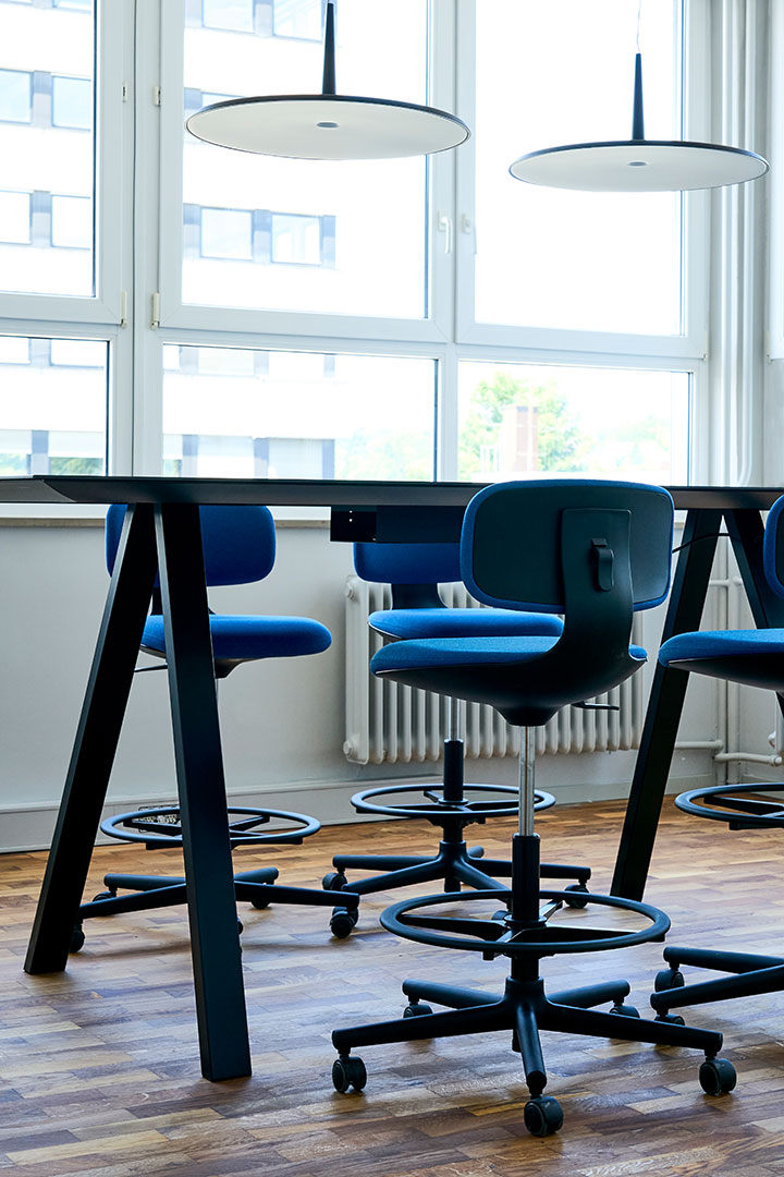 Der Umbruch weg vom klassischen Büro hin zu Räumen, die mehr sind als nur ein Platz, an dem Arbeit verrichtet und erledigt wird, ist nicht mehr wegzudiskutieren. Spätestens seit dem Moment, an dem es zum Alltag wurde, anfallende Schreibtischarbeit auch außerhalb des klassischen Büros erledigen zu können, wurde das Konzept Büro und die Anwesenheit in selbigem komplett infrage gestellt. Nicht nur aus betriebswirtschaftlichen Gründen, sondern auch, weil es auszuloten gilt, welche Art von Arbeitsplätzen wir im Alltag wirklich brauchen. Wir begreifen es als Chance, Räume deshalb neu in ihrem Nutzen definieren zu können. Das Potential, das darin liegt, Arbeitsräume zu Lebensräumen zu machen, in denen sich Teams finden, treffen, austauschen und gegenseitig zu geistigen Höhenflügen animieren, ist riesig.